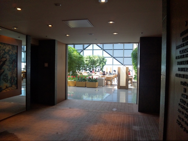 エレベーターのドアが開くと光がいっぱいに差し込む空間に出ます。ここがピークラウンジ。パークハイアット自慢のラウンジであります。もっとホテル滞在客のラフな格好のおっさんとかがいるのかと思いきや、みなさんスマートな出で立ち。少しひるみつつ声をかけます。「予約はしていないのですが…」。